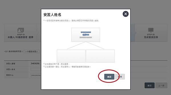 之後,要輸入安置人的編號,(跟在加入會員一開始輸入時相同),手動輸入7碼。